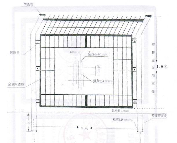 6.金屬護(hù)欄網(wǎng)網(wǎng)片施工方法:根據(jù)要求按照基礎(chǔ)及立柱施工,而后進(jìn)行網(wǎng)片安裝施工。施工工程根據(jù)直線原則,同時又要對不平整地形,盡量整成直線平坡或斜披,使結(jié)構(gòu)上不要有太大起伏。一下是框架護(hù)欄網(wǎng)安裝圖紙說明: